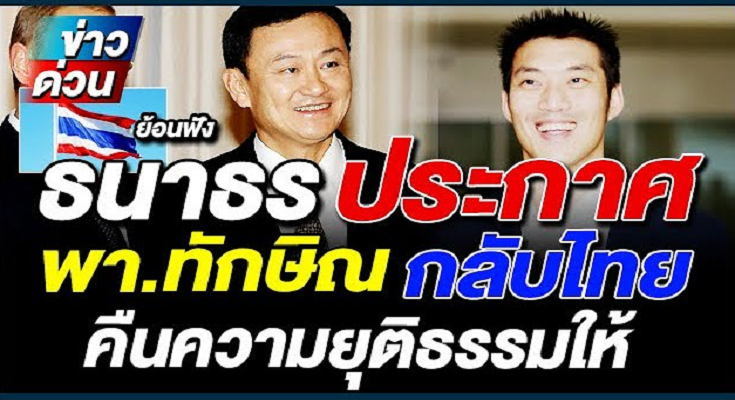 สมัย รัฐบาล ทหาร เรา จึง ขอ เสนอ ให้ คืน ความ ยุติธรรม ให้ เขา นำ ตัว คุณ ทักษิณ กลับ มา มา เข้า สู่ กระบวน การ ยุติธรรม เขา ต้อง รับ ผล ที่ เกิด ขึ้น ซึ่ง ผม คิด ว่า เป็น ทาง ออก เดียว และ ผู้ นำ ทั้ง กลุ่ม คน เสื้อ เหลือง และ คน เสื้อ แดง ต้อง รับ ผิด ชอบ ต่อ คำ ถาม ที่ ว่า เขา จะ ทำ อย่าง ไร หา ทาง ถอน คดี ความ และ ฟ้อง ด้วย เข้า หา ใหม่ ที่ มี โทษ น้อย ลง เพื่อ เป็น การ ต้อน รับ คุณ ทักษิณ หรือ ไม่ คุณ ธนาธร ตอบ ว่า ไม่ แต่ จะ รื้อ คดี ต่าง ๆ ที่ จะ รณา คดี ต่าง ๆ ใหม่ โดย ผู้ พิพากษา ต้อง มี ความ เป็น