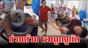 แตกตื่นทั้ง รพ.หนุ่มใจเด็ด ถูกงูจกอางกัด รีบคว้างูมาหาหมอ