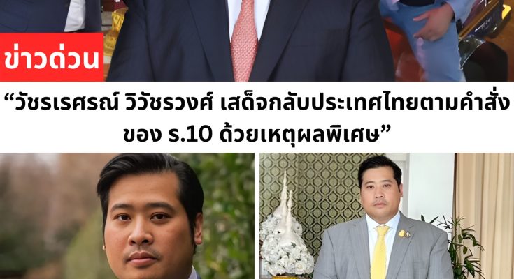 หา ความ รู้ มาก ขึ้น เพื่อ ไป เผย แพร่ วัฒนธรรม ของ เรา ใน ต่าง แดน ต่อ ไป ดี ใจ มาก ที่ ได้ กลับ มา ขอบคุณ ครับ วัน นี้ วัชรเณร สอน วิวัชชันวงศ์ อาจ ติด ต่อ กับ สมาชิก ราชวงศ์ ไทย หลัง จาก ใช้ ชีวิต ดี ภาย ใน ต่าง ประเทศ มา 30 ปี ยัง ไม่ ชัด เจน ว่า ท่าน อ้น ได้ เข้า เฝ้า พ่อ หลวง รัชกาล ที่ 10 หรือ ไม่ แต่ ที่ แน่ ๆ การ กลับ มา เมือง ไทย ครั้ง นี้ ท่าน อ้น วัด ทะเล สอน จะ ได้ รับ อนุญาต จาก กษัตริย์ ให้ เข้า เฝ้า สมาชิก ราชวงศ์ โดย เชื่อ ว่า รัชกาล ที่ 10 จะ ทรง ฟื้น ฟู สถานะ ของ พี่ น้อง วิวัชรวงศ์ ทั้ง 4